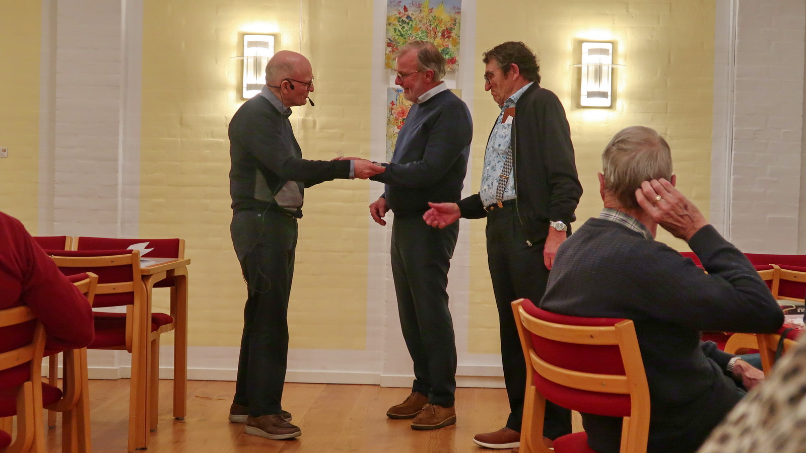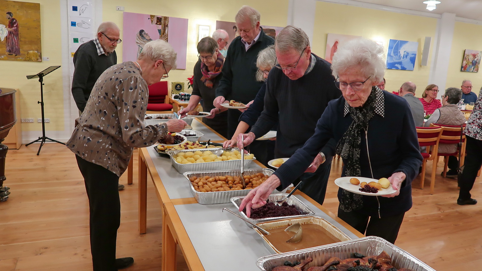 Onsdag den 4. december var det blevet tid til vores Adventsfest, der som sædvanlig blev afholdt i Sognehuset. Denne gang var der ikke inviteret gæst til at fortælle, men det var en aften ved to af vore klubmedlemmer, Gerda og Lars-Peter Melchiorsen, der stod for aftenen. Vi spiste lækker juleand med tilbehør og risalamande til kaffen. Og denne gang var der mandelgaver til hvert bord. Vi sang en del advents- og julesange fra PULS, men Lars-Peter havde også fundet nogle, der var kendte fra vores egen ungdomstid. Midt på aftenen genfortalte Gerda en af Gunda Jørgensens fortællinger, nemlig hendes legende om Steffen Stalddreng, der ser Betlehemstjernen mens han vander Herodes's heste. Under kaffen overrakte pastpræsident Erik Hansen 40-års hæders-nålen til Erik Berg og Jørgen Due Pedersen og takkede for deres indsats i klbben.