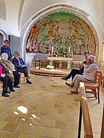 Efter at besøget havde været udskudt et par gange på grund af corona, kunne det nu gennemføres, og det havde vi glædet os meget til. Vi havde aftalt at mødes i Christiansfeld kl. 10, hvor vi fik kaffe "fra bagsmækken". Pæsident Leif Johanneson bød velkommen og Lars Andersen fra Brødreenighedens ældsteråd mødtes med os på kirkepladsen. Vi gik ind gennem kirkesalen, hvor organisten øvede på orglet, da der skulle være orgelmatiné kl. 11. I den lille kirkesal fortalte han om Brødremenigheden og det, der var det særlige for menighedens liv, gudstjeneste og teologiske vægtlægninger. Derefter gik vi gennem byen med små ophold, hvor der blev fortalt om de særlige forhold, som menigheden levede under og udfoldede sig på. Vi besøgte kirkegården "Gudsageren", hvor der ligeledes blev fortalt og svaret på mange spørgsmål. Det var rigtig dejligt at få et indblik heri, for det er noget helt andet end blot se se byen som UNESCO-seværdighed.