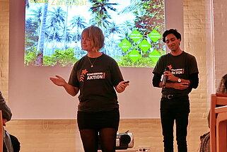 Vi havde besøg af to unge, der fortalte levende og engageret om Danmissions arbejde i Zanzibar.